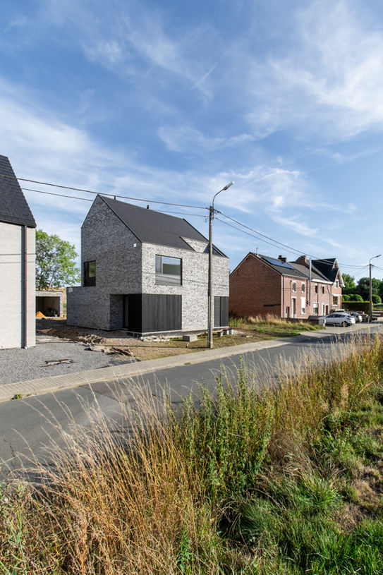 Deze woning vertaalt het archetype van het klassieke huis naar een hedendaagse, heldere architectuur. Een compact volume in genuanceerd gevelmetselwerk wordt verfijnd door donkere accenten en subtiele uitsnijdingen. De combinatie van robuuste materialen en precieze detaillering geeft het gebouw een rustige, vanzelfsprekende uitstraling. Openingen zijn zorgvuldig gepositioneerd om licht, privacy en zicht op het omliggende landschap in balans te brengen, waardoor de woning zich ingetogen maar zelfverzekerd verankert in haar context.
